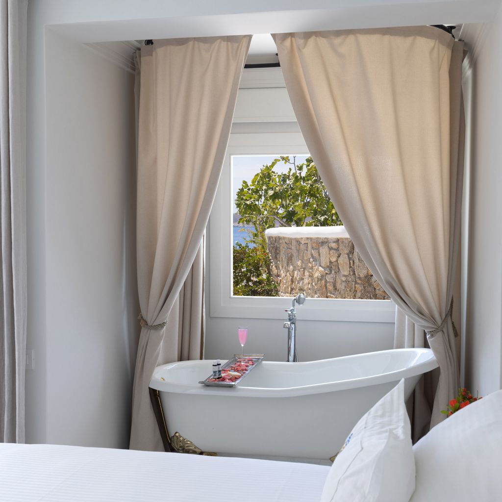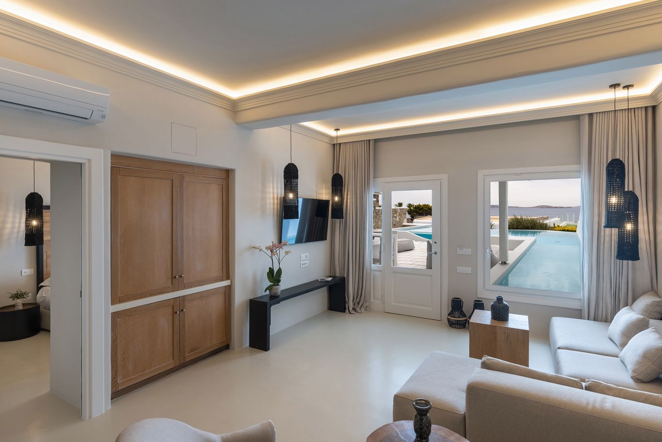 This spacious Mykonos accommodation is designed to provide guests with a perfect place to relax and experience the unhurried pace of island life. The combination of available space and deluxe amenities of the two bedroom villas is truly awe-inspiring. Open living areas and a private pool ensure splendid exclusivity and a perfect opportunity to enjoy a dream vacation.